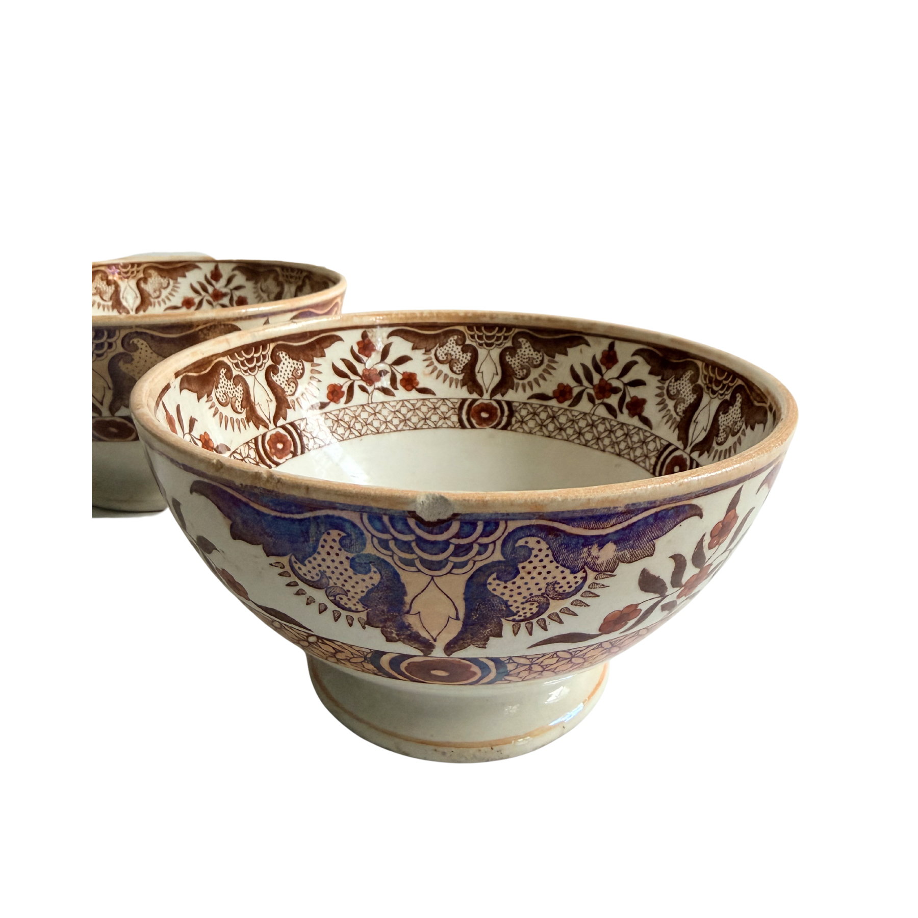 Two Dutch, circa 1880, Petrus Regout Maastricht transferware bowls in the oriental inspired Toko pattern.